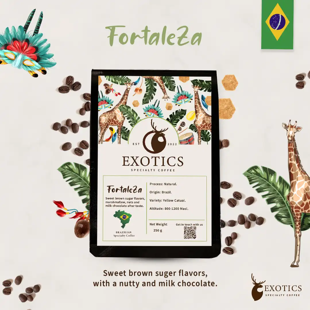 Fortaleza محصول برازيلي مستوحى من مدينة فورتاليزا الساحلية. تتميز القهوة بقوام كريمي ونكهات غنية من المكسرات والسكر البني، مع لمسة حلوة من المارشميلو وافتر تيست ساحر من شوكولاتة الحليب. مثالية للإسبريسو، المشروبات الباردة، والمفلترة الكلاسيكية. لتكون كوب قهوة مختصة يومي لن تمل منه.